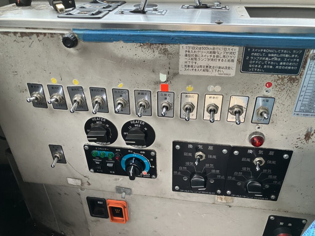 大型路線バス 中古バス 車体基本情報 メーカー いすゞ 型式 PKG-LV234L2 年式 平成20年1月 走行距離 約745,000km 定員 74[31]人 形状 エルガ 装備 装備 塗り替え必須 ノンステップ 5速MT ※塗装や社名は画像補正済み。写真に反映されない外装(キズ・日焼け・シール跡)内装(汚れ・破れ・欠落)下回り(サビ・腐れ)等の瑕疵有り。現車確認願います。 資料ダウンロード 中古バス買取・販売事業へもどる